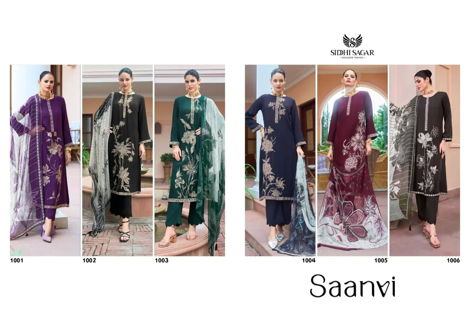 Introducing the SAANVI catalog by Siddhi Sagar, a perfect winter wear collection featuring pure Bemberg Viscose Pashmina fabric with intricate designer embroidery. This set includes a top, bottom, and dupatta, designed for comfort and style during the colder months. Available at a wholesale price, it's perfect for both casual and festive occasions.